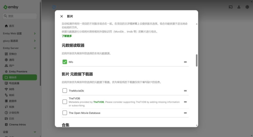 - 媒体库:正常登录Emby并添加对应的媒体库。如果STRM索引更新后Emby没有同步,可以尝试重启或扫描媒体库。